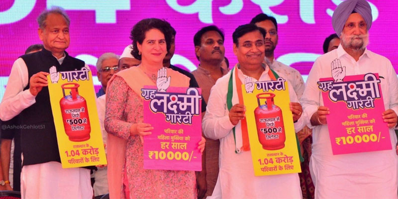 ರಾಜಸ್ಥಾನ ವಿಧಾನಸಭೆ ಚುನಾವಣೆಗೆ ಒಂದು ತಿಂಗಳು ಬಾಕಿ ಇರುವಾಗ ಮುಖ್ಯಮಂತ್ರಿ ಅಶೋಕ್ ಗೆಹ್ಲೋಟ್ ಅವರು ರಾಜ್ಯದಲ್ಲಿ ಕಾಂಗ್ರೆಸ್ ಮರು ಆಯ್ಕೆಯಾದರೆ ಕುಟುಂಬದ ಮಹಿಳೆಗೆ ವಾರ್ಷಿಕ 10,000 ರೂ. ಭರವಸೆ.