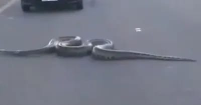ರಸ್ತೆ ಮಧ್ಯೆ ಅಪಾಯಕಾರಿಯಾದ ದೈತ್ಯ ಹಾವು ನೋಡಿದ್ರೆ ಯಾರಿಗೇ ಆದ್ರೂ ಒಂದು ಸಾರಿ ಭಯ ಆದೀತು. ಅಂತೆಯೇ ಟ್ರಾಫಿಕ್ ಮಧ್ಯೆ ಏಕಾಏಕಿ ಕಾಣಿಸಿಕೊಂಡ ದೈತ್ಯ ಹಾವಿನ ವೀಡಿಯೋ ಒಂದು ವೈರಲ್ ಆಗಿದೆ.