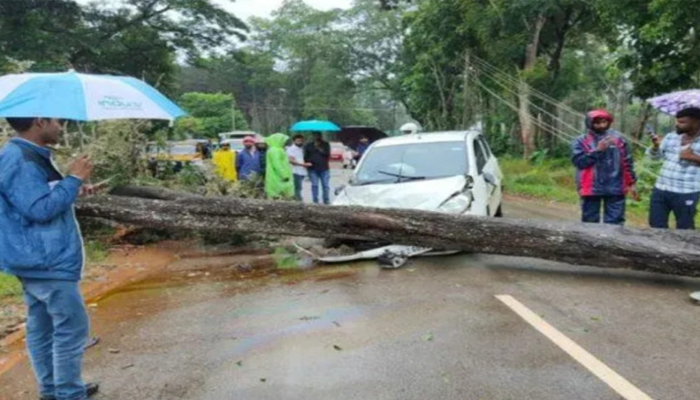 ನೋಡ ನೋಡುತ್ತಿದ್ದಂತೆಯೇ ಚಲಿಸುತ್ತಿದ್ದ ಕಾರಿನ ಮೇಲೆ ಬೃಹತ್‌ ಮರವೊಂದು ಉರುಳಿ ಬಿದ್ದು ಕಾರಿನಲ್ಲಿದ್ದ ಇಬ್ಬರು ಅದೃಷ್ಟವಶಾತ್ ಪ್ರಾಣಪಾಯದಿಂದ ಪಾರಾಗಿದ್ದಾರೆ.