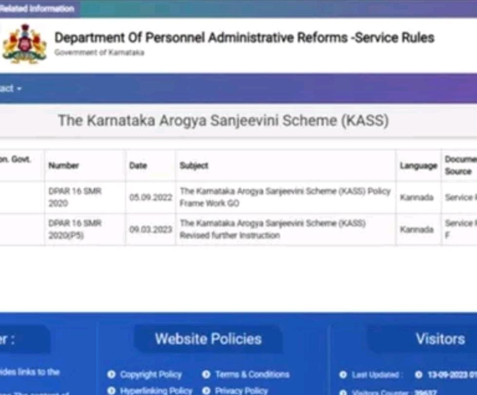 https:// dpar.karnataka.gov.in/servicerules/public/info-2 The+Karnataka+Arogya+Sanjeevini+Scheme+(KASS)/kn  ವೆಬ್ ಸೈಟ್ ಗೆ ಭೇಟಿ ನೀಡಿ.