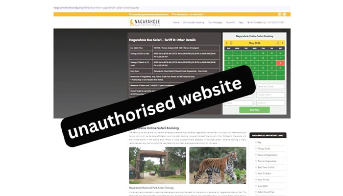 ನಾಗರಹೊಳೆ ನ್ಯಾಷನಲ್ ಪಾರ್ಕ್ ಹೆಸರಿನಲ್ಲಿ ನಕಲಿ ವೆಬ್ ಸೈಟ್ ನ್ನು ಕಳೆದ ಜನವರಿಯಲ್ಲಿಯೇ ವಂಚಕರು ತೆರೆದಿದ್ದರಾದರೂ ಅದು ಬೆಳಕಿಗೆ ಬರಲು ಆರು ತಿಂಗಳೇ ಬೇಕಾಗಿದೆ. ಈ ಬಗ್ಗೆ ಅರಣ್ಯ ಇಲಾಖೆಗೆ ಮಾಹಿತಿಯೇ ಇರಲಿಲ್ಲ. ಇದೀಗ ಬೆಳಕಿಗೆ ಬರುತ್ತಿದ್ದಂತೆಯೇ ಅರಣ್ಯ ಇಲಾಖೆ ಎಚ್ಚೆತ್ತುಕೊಂಡಿದ್ದು, ಪ್ರವಾಸಿಗರು ಆನ್ ಲೈನ್ ನಲ್ಲಿ ಬುಕಿಂಗ್ ಮಾಡುವ ಮುನ್ನ ಇಲಾಖೆಯ ಅಧಿಕೃತ ವೆಬ್ ಸೈಟಾ ಎಂಬುದನ್ನು ಖಾತರಿ ಮಾಡಿಕೊಳ್ಳುವಂತೆ ಎಚ್ಚರಿಕೆ ನೀಡಿದೆ.