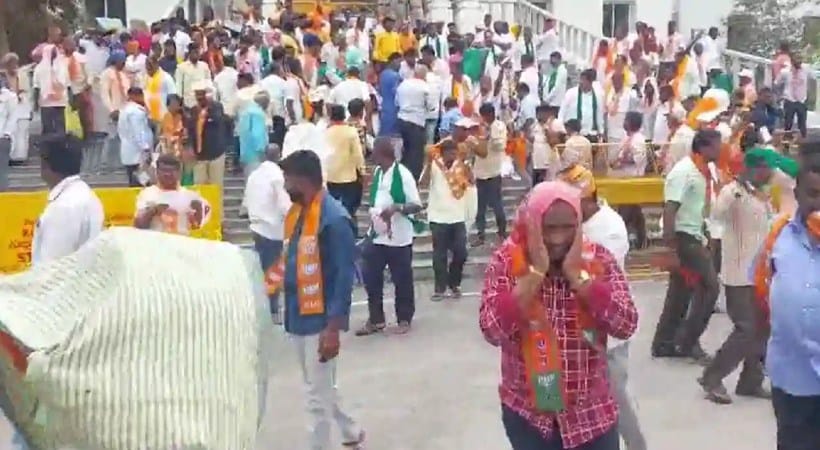 ಕಾಂಗ್ರೆಸ್ ಸರ್ಕಾರದ ವಿರುದ್ಧ ಬಿಜೆಪಿ ಪ್ರತಿಭಟನೆಗೆ ಜೇನುನೊಣಗಳ ದಾಳಿ. ಕರ್ನಾಟಕದ ಕೋಲಾರದಲ್ಲಿ ಈ ಘಟನೆ ನಡೆದಿದೆ. ಜೇನುನೊಣಗಳ ದಾಳಿಯಿಂದ ತಪ್ಪಿಸಿಕೊಳ್ಳಲು ಯತ್ನಿಸಿದಾಗ ಕಾಲ್ತುಳಿತದಲ್ಲಿ ಸಂಸದ ಸೇರಿದಂತೆ ಬಿಜೆಪಿ ಮುಖಂಡರು ಮತ್ತು ಕಾರ್ಯಕರ್ತರು ಗಾಯಗೊಂಡಿದ್ದಾರೆ.