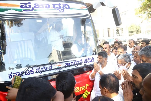 ಬೆಳಗಾವಿಯ ಟಿಳಕವಾಡಿಯ ವೀರಸೌಧದ ಬಳಿ ಬಸ್ ಯಾತ್ರೆಗೆ ಕೆಪಿಸಿಸಿ ಅಧ್ಯಕ್ಷ ಡಿ.ಕೆ ಶಿವಕುಮಾರ್, ವಿಪಕ್ಷ ನಾಯಕ ಸಿದ್ದರಾಮಯ್ಯ, ರಾಜ್ಯ ಕಾಂಗ್ರೆಸ್ ಉಸ್ತುವಾರಿ ಸುರ್ಜೆವಾಲಾ ಚಾಲನೆ ನೀಡಿದರು.