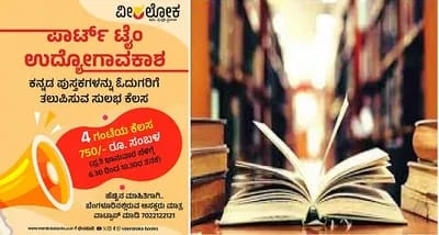 ಪಾರ್ಟ್ ಟೈಂ ಜಾಬ್ ಹುಡುಕುತ್ತಿರುವವರಿಗೆ ವೀರಲೋಕ ವತಿಯಿಂದ ಉತ್ತಮ ಅವಕಾಶವಿದ್ದು,  ಪ್ರತಿ ಭಾನುವಾರ ಕನ್ನಡ ಪುಸ್ತಕಗಳನ್ನ ಮಾರಾಟ ಮಾಡಿ ಕನ್ನಡ ಪುಸ್ತಕಗಳನ್ನ ಓದುಗರಿಗೆ ತಲುಪಿಸುವ ಮೂಲಕ ಹಣ ಗಳಿಸಬಹುದಾಗಿದೆ.