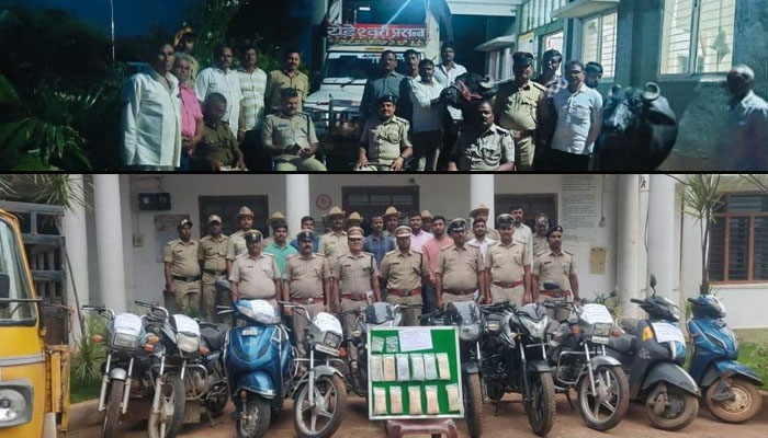 ಜಿಲ್ಲೆಯಲ್ಲಿ ಜರುಗಿದ ಮಂದಿರ ಕಳ್ಳತನ ಪ್ರಕರಣ, ಅಂತರರಾಜ್ಯ ದ್ವಿಚಕ್ರ ವಾಹನ ಕಳ್ಳರ ಬಂಧನ ಮತ್ತು ಎಮ್ಮೆಗಳನ್ನು ಪತ್ತೆ ಹಚ್ಚಿ ಒಟ್ಟು 12,44,970 ಮೌಲ್ಯದ ವಸ್ತುಗಳು ಹಾಗೂ 5 ಜನರು ಆರೋಪಿಗಳನ್ನು ಬಂಧಿಸಲಾಗಿದ್ದು, ಎರಡೂ ಉಪ–ವಿಭಾಗದ ಅಧಿಕಾರಿ ಸಿಬ್ಬಂದಿಯವರ ಕಾರ್ಯಕ್ಕೆ ಶ್ಲಾಘಿಸಲಾಗಿದೆ.