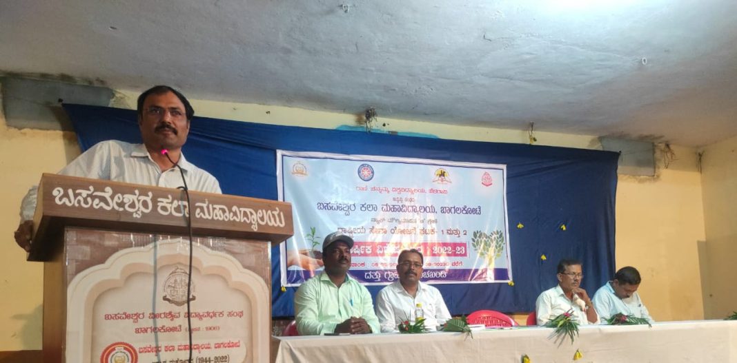 ಬಿವಿವಿ ಸಂಘದ ಬಸವೇಶ್ವರ ಕಲಾ ಮಹಾವಿದ್ಯಾಲಯದ ರಾಷ್ಟ್ರೀಯ ಸೇವಾ ಯೋಜನೆ ಘಟಕ 1 ಮತ್ತು 2ರಿಂದ ಹಮ್ಮಿಕೊಂಡ ವಾರ್ಷಿಕ ವಿಶೇಷ ಶಿಬಿರದ 2ನೇ ದಿನದ ಮುಖ್ಯ ಅತಿಥಿಗಳಾಗಿ ಆಗಮಿಸಿ ಮಾತನಾಡಿದರು. ಇಂದಿನ ದಿನ ಮಾನಗಳಲ್ಲಿ ಆಹಾರದ ಪ್ರಮಾಣದಲ್ಲಿ ಪೌಷ್ಟಿಕಾಂಶ ಕೊರತೆ ತಲೆದೋರುತ್ತಿದೆ. ಮಾದಕ ವ್ಯಸನಿಗಳ ಸಂಖ್ಯೆ ಹೆಚ್ಚುತ್ತಿದ್ದು ವಿದ್ಯಾರ್ಥಿಗಳು ಇವುಗಳಿಗೆ ಒಳಗಾಗದೆ ದೈಹಿಕ ಮತ್ತು ಮಾನಸಿಕವಾಗಿ ಸದೃಡವಾಗಿರಬೇಕು. ಧನಾತ್ಮಕ ವಿಚಾರಗಳನ್ನು ಮೈಗೂಡಿಸಿಕೊಳ್ಳಬೇಕು. ನಮ್ಮ ಸುತ್ತ ಮುತ್ತಲಿನ ಪರಿಸರ ಸ್ವಚ್ಛವಾಗಿ ಇಟ್ಟುಕೊಳ್ಳುವುದು ನಮ್ಮೆಲ್ಲರ ಆದ್ಯ ಕರ್ತವ್ಯ ಎಂದರು.