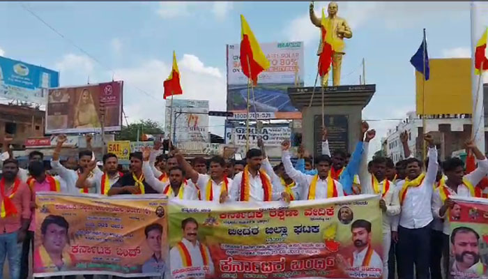 ಕರವೇ ಪ್ರವೀಣ ಶೆಟ್ಟಿ ಬಣ, ಕನ್ನಡಿಗರ ರಕ್ಷಣಾ ವೇದಿಕೆ, ಕರವೇ ಯುವ ಘರ್ಜನೆಯಿಂದ ಬೀದರ್ ನಲ್ಲಿ ಪ್ರತಿಭಟನೆ ನಡೆಯಿತು.