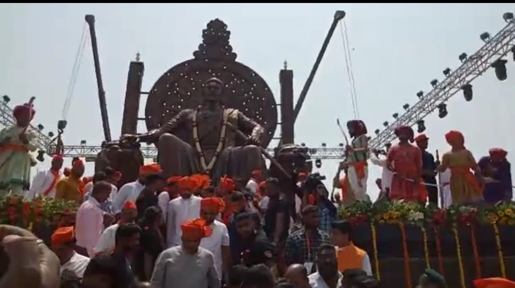 ಕೇಸರಿ ಬಟ್ಟೆ ನಿಧಾನವಾಗಿ ಕೆಳಗೆ ಸರಿಯುತ್ತಿದ್ದಂತೆ ಯುವರಾಜರ ಶಿಷ್ಯರು ಮಂತ್ರಘೋಷ ಮೊಳಗಿಸಿದರು. ಶಿವಾಜಿ ಮೂರ್ತಿ ಅನಾವರಣಗೊಳ್ಳುತ್ತಿದ್ದಂತೆ ಸೇರಿದ್ದ ಲಕ್ಷ ಲಕ್ಷ ಶಿವಾಜಿ ಭಕ್ತರು ಜೈ ಘೋಷ ಮೊಳಗಿಸಿದರು. ಇದೇ ಸಮಯಕ್ಕೆ ಬಣ್ಣದ ಓಕುಳಿಯಾಯಿತು.