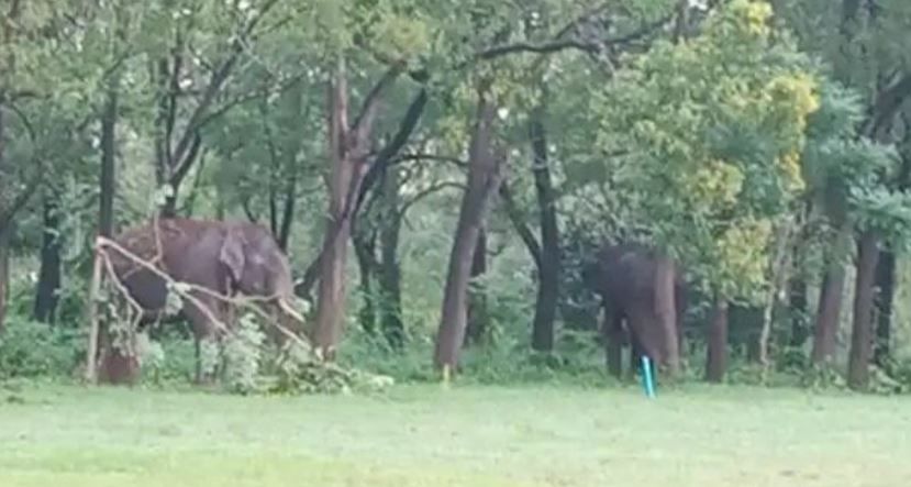 ಚಿರತೆ ಸೆರೆ ಕಾರ್ಯಾಚರಣೆಗೆ ಆಗಮಿಸಿರುವ ಈ ಎರಡೂ ಆನೆ‌ಗಳು ಈಗಾಗಲೇ ಗಾಲ್ಫ್ ಕೋರ್ಸ್ ನ ಪೊದೆಯೊಳಗೆ‌ ನುಗ್ಗಿವೆ.
