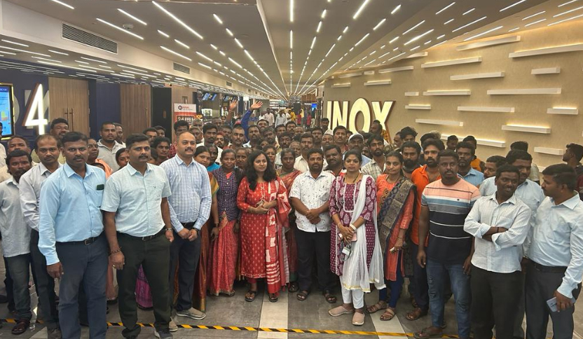ಐನಾಕ್ಸ್ ನಲ್ಲಿ ಮಧ್ಯಾಹ್ನದ ಪ್ರದರ್ಶನದಲ್ಲಿ 196 ಪೌರ ಕಾರ್ಮಿಕರು ಕಾಟೇರ ಚಿತ್ರವನ್ನು ವೀಕ್ಷಿಸಿದರು.