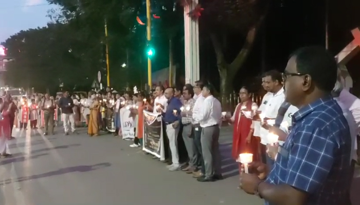 ನಗರದ ಟೌನ್ ಹಾಲ್ ವೃತ್ತದಲ್ಲಿ ಜಮಾಯಿಸಿದ ವೈದ್ಯರು ದೀಪ ಬೆಳಗಿಸಿ ಅತ್ಯಾಚಾರ ಹಾಗೂ ಕೊಲೆಗೆ ಹಿಡಾದ ವಿದ್ಯಾರ್ಥಿನಿಯ ಆತ್ಮಕ್ಕೆ ಶಾಂತಿ ಕೋರಿದರು ಅಲ್ಲದೆ ಆರೋಪಿಗಳಿಗೆ ಕಠಿಣ ಶಿಕ್ಷೆ ವಿಧಿಸಬೇಕೆಂದು ಒತ್ತಾಯಿಸಿದರು.