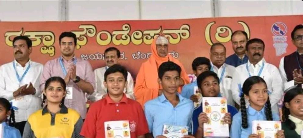 ಜಯನಗರದ ಚಂದ್ರಗುಪ್ತ ಮೌರ್ಯ ಆಟದ ಮೈದಾನದಲ್ಲಿ ರಕ್ಷಾ ಫೌಂಡೇಷನ್ ವತಿಯಿಂದ 10 ಸಾವಿರ ಮಕ್ಕಳಿಗೆ 1. 5 ಲಕ್ಷ ನೋಟ್ ಬುಕ್ ವಿತರಣೆ ಮತ್ತು ಪ್ರತಿಭಾ ಪುರಸ್ಕಾರ ವಿತರಿಸಿ ಮಾತನಾಡಿದರು. ದೇಶ, ಭಾಷೆ ಮತ್ತು ಸಂಸ್ಕೃತಿ, ಸಂಪ್ರದಾಯ ಮರೆಯಬಾರದು ಮಕ್ಕಳು.