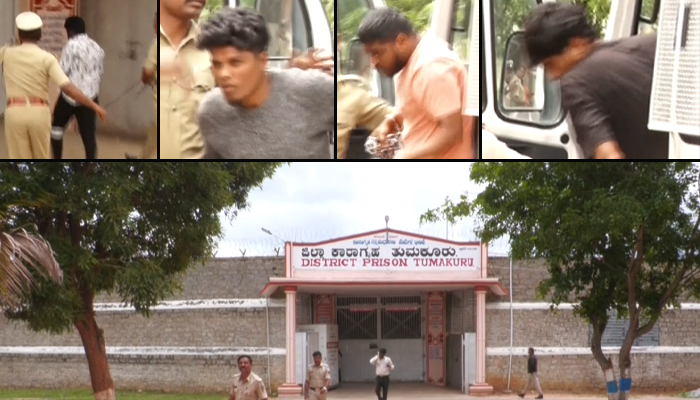 ತುಮಕೂರಿನ ಊರುಕೆರೆ ಬಳಿಯ ರಂಗಾಪುರದಲ್ಲಿರುವ ಜಿಲ್ಲಾ ಕಾರಾಗೃಹಕ್ಕೆ ಬಿಗಿ ಪೊಲೀಸ್ ಭದ್ರತೆಯಲ್ಲಿ ನಾಲ್ವರು ಆರೋಪಿಗಳನ್ನ ಸ್ಥಳಾಂತರ ಮಾಡಲಾಯಿತು.