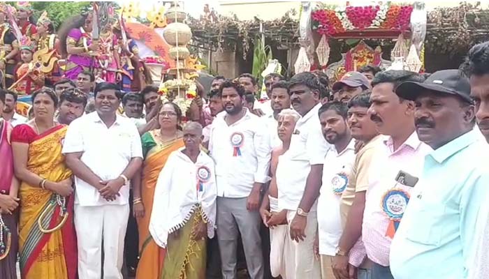 ಹೆಚ್.ಡಿ.ಕೋಟೆ: ಪಟ್ಟಣದ ವರದರಾಜಸ್ವಾಮಿ ದೇವಾಲಯದ ಮುಂಭಾಗ ಗ್ರಾಮೀಣ ದಸರಾ ಮಹೋತ್ಸವ ಮೆರವಣಿಗೆಗೆ ಶಾಸಕ ಅನಿಲ್ ಚಿಕ್ಕಮಾದು ಹಾಗೂ ಆದಿವಾಸಿ ಮಹಿಳೆ ಸೋಮಮ್ಮ ಚಾಲನೆ ನೀಡಿದರು.
