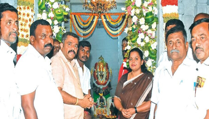 ತುಮಕೂರು: ತಾಲ್ಲೂಕಿನ ಹತ್ತೇನಹಳ್ಳಿ ಮಾರಮ್ಮ ದೇವಸ್ಥಾನದಲ್ಲಿ ಇತ್ತೀಚೆಗೆ ನಡೆದ ದೇವರ ಒಡವೆ ಕಳವು ಪ್ರಕರಣದಲ್ಲಿ ದೇವರ ತಾಳಿಯೂ ಕಳವಾಗಿತ್ತು. ದೇವರ ಒಡವೆ ಕಳವಾಗಿ ದೊಡ್ಡ ಅಪಚಾರವಾಗಿದೆ ಎಂದು ಭಕ್ತರು ಕಳವಳಗೊಂಡಿದ್ದರು. ಈ ಹಿನ್ನೆಲೆಯಲ್ಲಿ ಮಾಜಿ ಶಾಸಕ ಡಿ.ಸಿ.ಗೌರಿಶಂಕರ್ ಹಾಗೂ ಇವರ ಆಪ್ತರಾದ ಕಾಂಗ್ರೆಸ್ ಮುಖಂಡ, ಉದ್ಯಮಿ ಊರುಕೆರೆ ಜಗದೀಶ್ ಅವರು ಹೊಸದಾಗಿ ತಾಳಿ ಮಾಡಿಸಿ ಶುಕ್ರವಾರ ಮಾರಮ್ಮ ದೇವಿಗೆ ಸಮರ್ಪಣೆ ಮಾಡಿದರು.