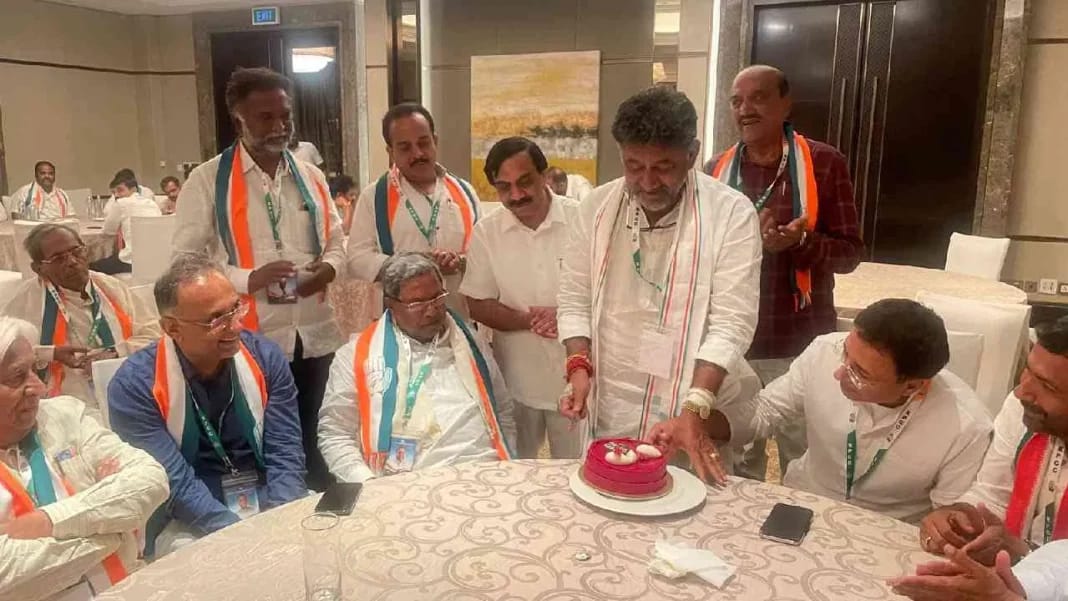 ಚುನಾವಣೆಗೂ ಮುನ್ನ ಒಗ್ಗಟ್ಟಿನ ಮಂತ್ರ ಜಪಿಸಿದ ಉಭಯ ನಾಯಕರು ಈಗ ಸಿಎಂ ಕುರ್ಚಿಗೆ ಪಟ್ಟು ಬಿಗಿಗೊಳಿಸಿದ್ದಾರೆ. ಸಿಎಂ ಹುದ್ದೆಯ ಪೈಪೋಟಿ ನಡುವೆಯೂ ಕಾಂಗ್ರೆಸ್ ನಾಯಕರು ಡಿ.ಕೆ.ಶಿವಕುಮಾರ್ ಅವರಿಗೆ ಕೇಕ್ ತಿನ್ನಿಸಿ ಹುಟ್ಟುಹಬ್ಬದ ಶಭಾಶಯ ಕೋರಿದರು.