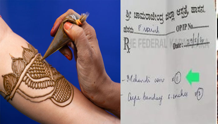 ಡಾಕ್ಟರ್ ಔಷಧಿ ಚೀಟಿಯಲ್ಲಿ ಒಂದು ಮೆಹೆಂದಿ ಕೋನ್ ಹಾಗೂ ಎರಡು ಕ್ರೇಪ್ ಬ್ಯಾಂಡೇಜ್ ತರುವಂತೆ ಬರೆದುಕೊಟ್ಟಿದ್ದರು. ಕಾಲು ಮೂಳೆ ಮುರಿದು ಬ್ಯಾಂಡೇಜ್ ಹಾಕಿಕೊಂಡಿದ್ದ ರೋಗಿ ಅದನ್ನು ಹುಡುಕಿಕೊಂಡು ಮೆಡಿಕಲ್ ಶಾಪ್, ಬ್ಯಾಂಗಲ್ ಸ್ಟೋರ್ ಅಲೆಯುತ್ತಿದ್ದಾಗ ಸಾಮಾಜಿಕ ಹೋರಾಟಗಾರ್ತಿ ಸುನೀತಾ ಹೆಬ್ಬಾರ್ ಅವರಿಗೆ ದೊರಕಿದ್ದರಿಂದ ಅವರು ಆ ಚೀಟಿಯ ಫೋಟೋ ತೆಗೆದು ಸಾಮಾಜಿಕ ಜಾಲತಾಣದಲ್ಲಿ ಪೋಸ್ಟ್ ಮಾಡಿದ್ದರು.