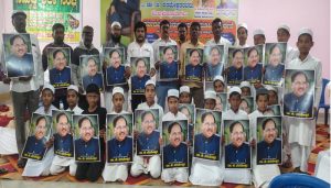 ಕೊರಟಗೆರೆ: ಪಟ್ಟಣದ ಗಿರಿನಗರ ಬಡಾವಣೆಯ ಸಮುದಾಯ ಭವನದಲ್ಲಿ ಏರ್ಪಡಿಸಲಾಗಿದ್ದ ಸರ್ವಧರ್ಮ ಗುರುಗಳ ಸಾಮೂಹಿಕ ಪ್ರಾರ್ಥನೆಯಲ್ಲಿ ಡಾ.ಜಿ ಪರಮೇಶ್ವರ್ ಭಾವಚಿತ್ರ ಹಿಡಿದು ಅವರು ಸಿಎಂ ಆಗಲಿ ಎಂದು ಸರ್ವಧರ್ಮದ ಮುಖಂಡರು ಹಾಗೂ ಕಾರ್ಯಕರ್ತರು ಸೇರಿದಂತೆ 2000ಕ್ಕೂ ಹೆಚ್ಚು ಸ್ವಯಂಸೇವಕರು ಪ್ರಾರ್ಥಿಸಿದರು.