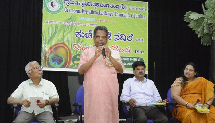 ನಗರದ ಕನ್ನಡ ಭವನದಲ್ಲಿ ಗ್ರಾಮೀಣ ಕ್ರಿಯಾತ್ಮಕ ರಂಗ ತಂಡ(ರಿ), ತುಮಕೂರು, ಕನ್ನಡ ಮತ್ತು ಸಂಸ್ಕೃತಿ ಇಲಾಖೆಯ ಸಹಯೋಗದಲ್ಲಿ ಹಮ್ಮಿಕೊಂಡಿದ್ದ ಸಾಹಿತಿ ಪ್ರೊ.ಹೆಚ್.ಎಸ್.ವೆಂಕಟೇಶಮೂರ್ತಿ ಅವರ ಕುಣಿ ಕುಣಿ ನವಿಲೆ ನಾಟಕವನ್ನು ಸಮ್ಮತ ಥಿಯೇಟರ್ ನ ಯಶವಂತ ಡಿ.ನಿರ್ದೇಶಿಸಿದ್ದು, ರಂಗ ನಿರ್ವಹಣೆ ಸುನಿಲ್ ಚೇತನ್ ಅವರದ್ದು, ನವೀನ್ ಭೂಮಿ ನಿನಾಸಂ ಅವರ ಬೆಳಕಿನ ವಿನ್ಯಾಸ ಮಾಡಿದ್ದು, ಪ್ರಸಾದನ ಹಂಸ ಪ್ರಿಯ, ಪ್ರದರ್ಶನಕ್ಕೆ ಚಾಲನೆ ನೀಡಿ ಮಾತನಾಡುತಿದ್ದ ಅವರು, ಪೌರಾಣಿಕ ನಾಟಕಗಳಲ್ಲಿ ಪದ್ಯ, ಕಂದ ಪದ್ಯಗಳ ಮೂಲಕ ಹೇಗೋ ನಾಟಕವನ್ನು ತೂಗಿಸಬಹುದು. ಆದರೆ ಸಾಮಾಜಿಕ ನಾಟಕಗಳಲ್ಲಿ ಕಥಾವಸ್ತುವೇ ಪ್ರಧಾನವಾಗಿರುವ ಕಾರಣ. ಕಲಾವಿದರು ಭಾವ ತುಂಬಿ ಅಭಿನಯಿಸಿದಾಗ ಮಾತ್ರ ಪ್ರೇಕ್ಷಕರಿಂದ ಚಪ್ಪಾಳೆ ಗೌರವ ಸಿಗಲು ಸಾಧ್ಯ ಎಂದರು.