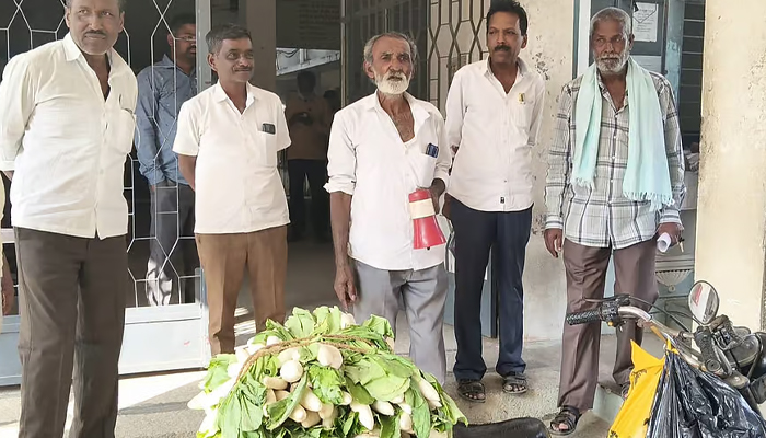 ಮೂಲಂಗಿ ಹಿಡಿದು ಆಕ್ರೋಶ: ಜಮೀನಿನ ದಾರಿ ಒತ್ತುವರಿ ತೆರವುಗೊಳಿಸಲು ಅಥವಾ ಸ್ಥಳ ಪರಿಶೀಲನೆ ನಡೆಸಲು ಅಧಿಕಾರಿಗಳು ಹಣದ ಬೇಡಿಕೆ ಇಟ್ಟಿದ್ದಾರೆ ಎಂದು ಆರೋಪಿಸಿರುವ ಪ್ರಸನ್ನಕುಮಾರ್, ಮಂಗಳವಾರ ತಾಲ್ಲೂಕು ಕಚೇರಿ ಮುಂದೆ ಮೈಕ್ ಹಿಡಿದು ಘೋಷಣೆ ಕೂಗಿದರು. “ನನ್ನ ಬಳಿ ಲಂಚ ನೀಡಲು ಹಣವಿಲ್ಲ, ಹಾಗಾಗಿ ನಾನು ಬೆಳೆದ ಮೂಲಂಗಿಯನ್ನೇ ಲಂಚವಾಗಿ ಕೊಡುತ್ತೇನೆ ಬನ್ನಿ” ಎಂದು ಅಧಿಕಾರಿಗಳನ್ನು ವ್ಯಂಗ್ಯವಾಗಿ ಕರೆದರು.
