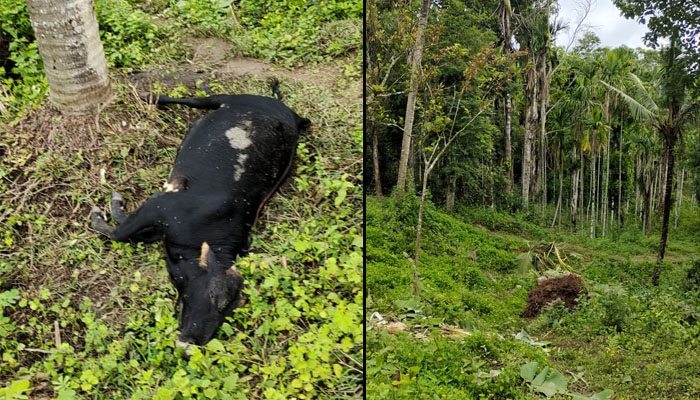 ಕಾಡಾನೆ ದಾಳಿ: ಮೇಯಲು ಕಟ್ಟಿ ಹಾಕಿದ್ದ ಹಸು ಸಾವು
