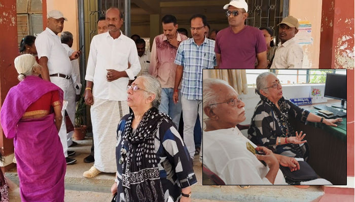 ಗುಬ್ಬಿ: ತಾಲೂಕು ಕಚೇರಿಯ ಭೂ ಮಾಪನ ಇಲಾಖೆಯ ಅಧಿಕಾರಿಗಳ ಬೇಜವಾಬ್ದಾರಿಯಿಂದಾಗಿ ಖ್ಯಾತ ರಂಗಕರ್ಮಿ ಹಾಗೂ ರಾಜ್ಯಸಭೆಯ ಮಾಜಿ ಸದಸ್ಯೆ ಬಿ. ಜಯಶ್ರೀ ಅವರು ಕಚೇರಿಗೆ ಅಲೆದಾಡುವಂತಾದ ಘಟನೆ ಗುರುವಾರ ನಡೆದಿದೆ. ರಂಗ ಚಟುವಟಿಕೆಗಾಗಿ ಜಮೀನು ದಾನ ನೀಡಲು ಮುಂದಾದ ಅವರಿಗೆ ಇಲಾಖೆಯ ಸರ್ವೇಯರ್ ಉದ್ಧಟತನದ ಉತ್ತರ ನೀಡಿರುವುದು ಸಾರ್ವಜನಿಕರ ಆಕ್ರೋಶಕ್ಕೆ ಕಾರಣವಾಗಿದೆ.