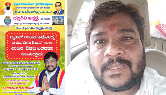 ಚಿಕ್ಕನಾಯಕನಹಳ್ಳಿ: ಹನುಮಂತ ರಾಮ ನಾಯಕ್ ಗ್ರಾಮೀಣಾಭಿವೃದ್ಧಿ ಸಂಘ ಚಿಕ್ಕನಾಯಕನ ಹಳ್ಳಿ ಹಾಗೂ ತಾಲ್ಲೂಕು ಬಂಜಾರ ಬಳಗ ವತಿಯಿಂದ ಶ್ರೀ ಮಾತಾ ಚಾರಿಟಬಲ್ ಟ್ರಸ್ಟ್ ಸಪ್ತಗಿರಿ ಆಸ್ಪತ್ರೆ, ಬೆಂಗಳೂರು ಇವರ ಸಹಯೋಗದೊಂದಿಗೆ ಚಿಕ್ಕಸಂದ್ರ, ಹೆಸರುಘಟ್ಟ ಮುಖ್ಯರಸ್ತೆ, ಬೆಂಗಳೂರು ಇವರ ಸಂಯುಕ್ತಾಶ್ರಯದಲ್ಲಿ ಬೃಹತ್ ಉಚಿತ ಆರೋಗ್ಯ ತಪಾಸಣಾ ಶಿಬಿರ ಹಾಗೂ ಉಚಿತ ಔಷಧಿ ವಿತರಣಾ ಕಾರ್ಯಕ್ರಮ ಆಯೋಜಿಸಲಾಗಿದೆ.