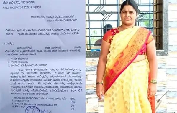 ಗ್ರಾಮದ ಅಭಿವೃದ್ಧಿ ಕೆಲಸಗಳಿಗಾಗಿ ಕಾಮಗಾರಿ ಅನುಮೋದನೆಗೆ ಪಂಚಾಯಿತಿ ಅಧಿಕಾರಿಗಳಿಂದ ಶೇ. 30 ಕಮಿಷನ್ ಬೇಡಿಕೆ ಇದೆ. ಆದರೆ, ಕಮಿಷನ್ ನೀಡಲು ನನ್ನ ಕೈಯಿಂದ ಸಾಧ್ಯವಾಗದೇ ರಾಜೀನಾಮೆ ನೀಡುತ್ತಿದ್ದೇನೆ ಎಂದು ಸುಧಾ ಅವರು ಪತ್ರದಲ್ಲಿ ತಿಳಿಸಿದ್ದಾರೆ.