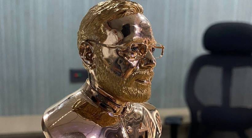 ಗುಜರಾತ್ನಲ್ಲಿ 156 ಸ್ಥಾನಗಳಲ್ಲಿ ಬಿಜೆಪಿ ಗೆಲುವು ಸಾಧಿಸಿದ ಸಂಕೇತವಾಗಿ 156 ಗ್ರಾಂ ತೂಕದ ಚಿನ್ನದ ಪ್ರತಿಮೆಯನ್ನು ಸ್ಥಾಪಿಸಲಾಯಿತು. 19.5 ಪವನ್ ಚಿನ್ನದ ವಿಗ್ರಹಕ್ಕೆ 8,11,200 ರೂ. ಕಾರ್ಮಿಕ ಶುಲ್ಕ ಸೇರಿ 11 ಲಕ್ಷ ರೂಪಾಯಿಗೆ ಚಿನ್ನದ ಮೂರ್ತಿಯನ್ನು ಮಾರಾಟಕ್ಕೆ ಇಡಲಾಗಿದೆ.