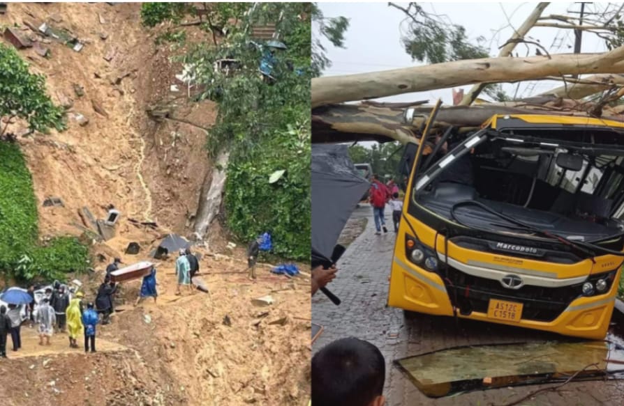 ಅಸ್ಸಾಂನಲ್ಲಿ ಶಾಲಾ ಬಸ್ ಮೇಲೆ ಬಿದ್ದ ಮರ ಚಂಡಮಾರುತದ ನಂತರ ಭಾರೀ ಮಳೆ ಮತ್ತು ಬಿರುಗಾಳಿಯಿಂದಾಗಿ ಅಸ್ಸಾಂನಲ್ಲಿ ನಾಲ್ವರು ಸಾವನ್ನಪ್ಪಿದ್ದಾರೆ. 18 ಮಂದಿ ಗಾಯಗೊಂಡಿದ್ದಾರೆ ಎಂದು ಅಧಿಕಾರಿಗಳು ದೃಢಪಡಿಸಿದ್ದಾರೆ. ಅಸ್ಸಾಂನ ಸೋನಿತ್ಪುರ ಜಿಲ್ಲೆಯಲ್ಲಿ ಶಾಲಾ ಬಸ್ ಮೇಲೆ ಮರ ಬಿದ್ದು 12 ಮಕ್ಕಳು ಗಾಯಗೊಂಡಿದ್ದಾರೆ. ಅವರನ್ನು ಸ್ಥಳೀಯ ಆಸ್ಪತ್ರೆಗೆ ದಾಖಲಿಸಲಾಗಿದೆ ಎಂದು ಅಧಿಕಾರಿಗಳು ತಿಳಿಸಿದ್ದಾರೆ. ರೆಮಲ್ ಚಂಡಮಾರುತದಿಂದ ಉಂಟಾದ ಭಾರೀ ಮಳೆಯು ನಾಗಾಲ್ಯಾಂಡ್ನಲ್ಲಿ ನಾಲ್ಕು ಜೀವಗಳನ್ನು ಬಲಿ ತೆಗೆದುಕೊಂಡಿದೆ. 40 ಕ್ಕೂ ಹೆಚ್ಚು ಮನೆಗಳಿಗೆ ಹಾನಿಯಾಗಿದೆ ಎಂದು ರಾಜ್ಯ ಅಧಿಕಾರಿಗಳು ಖಚಿತಪಡಿಸಿದ್ದಾರೆ. ರಾಜ್ಯದ ಅತ್ಯಂತ ಹಾನಿಗೊಳಗಾದ ಪ್ರದೇಶಗಳಲ್ಲಿ ರಕ್ಷಣಾ ಕಾರ್ಯಾಚರಣೆ ನಡೆಯುತ್ತಿದೆ.