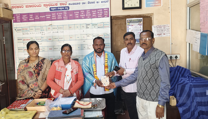 ಬೀದರ್/ ಔರಾದ: ತಾಲೂಕಿನ ಸಂತಪುರ ಸರ್ಕಾರಿ ಮಾದರಿ ಪ್ರಾಥಮಿಕ ಶಾಲೆಯಲ್ಲಿ ಬಿಸಿಯೂಟ ತಯಾರಕರ ಫೆಡರೇಷನ್ ನ ತಾಲೂಕು ಅಧ್ಯಕ್ಷ ರಾಜಕುಮಾರ ಶೆಂಬೆಳ್ಳಿ ಅವರನ್ನುಸನ್ಮಾನಿಸಿ ಗೌರವಿಸಲಾಯಿತು.