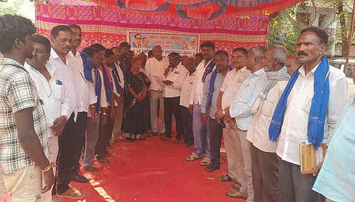 ಒಳಮೀಸಲಾತಿ ಜಾರಿಯಾಗುವವರೆಗೂ ಯಾವುದೇ ಹೊಸ ನೇಮಕಾತಿ ಪ್ರಕ್ರಿಯೆ ನಡೆಸಬಾರದು ಎಂದು ಆಗ್ರಹಿಸಿ ಗ್ರೇಡ್–2 ತಹಶೀಲ್ದಾರ್ ಸುಮತಿ ಅವರ ಮೂಲಕ ಸರ್ಕಾರಕ್ಕೆ ಮನವಿ ಪತ್ರ ಸಲ್ಲಿಸಲಾಯಿತು.