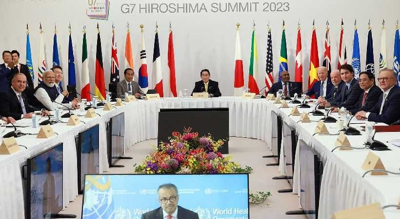 ಜಪಾನಿನ ಪ್ರಧಾನ ಮಂತ್ರಿ ಫ್ಯೂಮಿಯೊ ಕಿಶಿಡಾ, ಯು.ಎಸ್. ಅಧ್ಯಕ್ಷ ಜೋ ಬಿಡನ್, ಬ್ರಿಟನ್ ಪ್ರಧಾನಿ ರಿಷಿ ಸುನಕ್ ಮತ್ತು ಇತರರೊಂದಿಗೆ ಮೋದಿ ಸ್ನೇಹ ಹಂಚಿಕೊಂಡರು. ಹಿರೋಷಿಮಾದಲ್ಲಿ ಮಹಾತ್ಮಾ ಗಾಂಧಿಯವರ ಪ್ರತಿಮೆಯನ್ನು ಅನಾವರಣಗೊಳಿಸಲಾಯಿತು. G7 ರಾಷ್ಟ್ರಗಳು ಆರ್ಥಿಕ ಭದ್ರತೆಯನ್ನು ಖಚಿತಪಡಿಸಿಕೊಳ್ಳಲು ಮತ್ತು ಪೂರೈಕೆ ಸರಪಳಿಗಳನ್ನು ಬಲಪಡಿಸಲು, ಚೀನಾ ಮತ್ತು ರಷ್ಯಾದಿಂದ ಉಂಟಾದ ಬೆದರಿಕೆಗಳನ್ನು ನಿವಾರಿಸಲು ಸಾಮಾನ್ಯ ವಿಧಾನವನ್ನು ಅನುಮೋದಿಸಿವೆ.