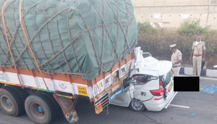 ತುಮಕೂರು: ಲಾರಿ — ಕಾರು ಮಧ್ಯೆ ಭೀಕರ ಅಪಘಾತ; ಮೂವರು ಸ್ಥಳದಲ್ಲೇ ಸಾವು