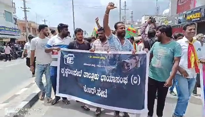 ಟಿ.ಬಿ. ಸರ್ಕಲ್ ನಿಂದು ಮಾನವ ಸರಪಳಿ ರಚಿಸಿ ಸರ್ಕಾರದ ವಿರುದ್ಧ ಘೋಷಣೆ ಕೂಗಿ ಆಕ್ರೋಶ ವ್ಯಕ್ತಪಡಿಸಿದರು, ನಂತರ ಕೆ.ಆರ್.ಪೇಟೆಯ ಬೀದಿ ಬೀದಿಗಳಲ್ಲಿ ಮೆರವಣಿಗೆ ಮಾಡಲಾಯಿತು.