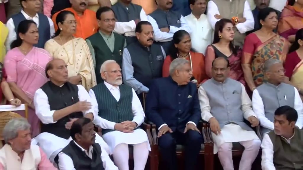 ಪ್ರಧಾನಿ ನರೇಂದ್ರ ಮೋದಿ, ಉಪರಾಷ್ಟ್ರಪತಿ ಜಗದೀಪ್ ಧನಕರ್‌, ಲೋಕಸಭಾ ಸ್ಪೀಕರ್ ಓಂ ಬಿರ್ಲಾ ಮತ್ತು ಇತರ ಸಂಸದರು ಇಂದಿನ ಸಂಸತ್ತಿನ ಅಧಿವೇಶನದ ಮೊದಲು ಜಂಟಿ ಫೋಟೋ ಸೆಷನ್‌ಗಾಗಿ ಪಾಲ್ಗೊಂಡಿದ್ದರು.