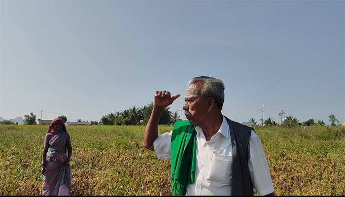 ಪಾವಗಡ ತಾಲೂಕಿನ ಬ್ಯಾಡನೂರು ಗ್ರಾಮದ ಸರ್ವೆ ನಂಬರ್ 182 ರಲ್ಲಿ ಚಿತ್ತಪ್ಪ ಎಂಬ ರೈತ 3 ಎಕರೆ ಜಮೀನಿನಲ್ಲಿ ಇಟ್ಟಿರುವ ಕಡಲೆಕಾಯಿ ಬೆಳೆಯು ಸಂಪೂರ್ಣವಾಗಿ ಕೈಕೊಟ್ಟಿದೆ. ಪ್ರತಿ ವರ್ಷವೂ ಆರಂಭದಲ್ಲಿ ಮಳೆ ಬಿದ್ದಾಗ ಈ ವರ್ಷವಾದರೂ ಬೆಳೆಯಾಗಬಹುದು ಎಂಬ ನಿರೀಕ್ಷೆಯಲ್ಲಿ ರೈತರು ವಿವಿಧ ರೀತಿಯಲ್ಲಿ ಸಾಲ ಮಾಡಿಯಾದರು ಬಿತ್ತನೆಯಲ್ಲಿ ತೊಡಗಿದರು. ಈ ಬಾರಿ ರೈತರು ಎರಡು ಹಂತದಲ್ಲಿ ಕಡಲೆಕಾಯಿ ಬೀಜ ಬಿತ್ತನೆ ಮಾಡಿದ್ದ. ಮೊದಲ ಹಂತದ ಬೆಳೆಗೆ ಬೆಂಕಿ ಸೀಡೆ ರೋಗವು ವ್ಯಾಪಕವಾಗಿ ಆವರಿಸಿದ್ದು ಎರಡನೇ ಹಂತದ ಬೆಳೆಗೆ ಮಳೆಯ ಅಭಾವ ಉಂಟಾಗಿರುವುದರಿಂದ ರೈತ ಮತ್ತೊಮ್ಮೆ ಸಂಕಟಕ್ಕೆ ಸಿಲುಕಿದ್ದಾರೆ ಎಂದರು.
