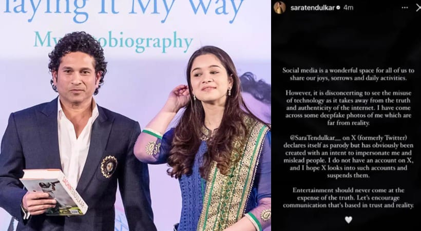 ಇತ್ತೀಚೆಗೆ ‘X’ ಖಾತೆ @SaraTendulkar__ ಭಾರತೀಯ ಆರಂಭಿಕ ಬ್ಯಾಟ್ಸ್ ಮನ್ ಶುಭಮಾನ್ ಗಿಲ್ ಅವರೊಂದಿಗೆ ಸಾರಾ ತೆಂಡೂಲ್ಕರ್ ಅವರ ಡೀಪ್ ಫೇಕ್ ಚಿತ್ರಗಳನ್ನು ಹಂಚಿ ಕೊಂಡಿದ್ದಾರೆ. ಇನ್ನೂರು ಐವತ್ತು ಸಾವಿರಕ್ಕೂ ಹೆಚ್ಚು ಹಿಂಬಾಲಕರನ್ನು ಹೊಂದಿರುವ ಖಾತೆಯಿಂದ ಶುಬ್ ಮಾನ್ ಗಿಲ್ ಗೆ ಸಂದೇಶಗಳನ್ನು ಕಳುಹಿಸುತ್ತಿದ್ದಾರೆ ಎಂಬ ವದಂತಿಗಳಿವೆ. ಇದು ಸಾರಾ ಅವರ ಪ್ರತಿಕ್ರಿಯೆ. ಸಾಮಾಜಿಕ ಜಾಲತಾಣದಲ್ಲಿ ಹಂಚಿ ಕೊಂಡಿರುವ ಟಿಪ್ಪಣಿಯ ಮೂಲಕ ಸಾರಾ ಟೀಕೆಗಳನ್ನು ಎತ್ತಿದ್ದಾರೆ.