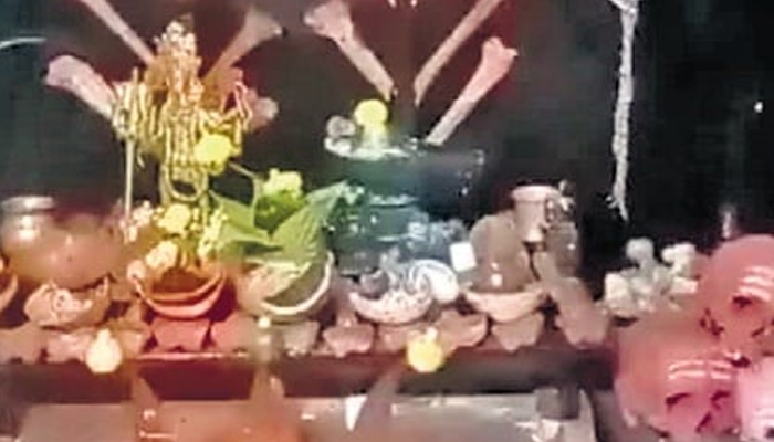 ಬಿಡದಿ ಬಳಿಯ ಜೋಗನಹಳ್ಳಿ ಗ್ರಾಮದ ತೋಟದ ಮನೆಯಲ್ಲಿ ತಲೆಬುರುಡೆಗಳು ಪತ್ತೆಯಾಗಿವೆ. ಬಲರಾಮ್ ಎಂಬಾತನಿಗೆ ಸೇರಿದ ಈ ತೋಟದ ಮನೆಯಲ್ಲಿ ಪತ್ತೆಯಾಗಿರುವ ತಲೆಬುರುಡೆಗಳನ್ನು ಒಂದೇ ಕೋಣೆಯಲ್ಲಿ ಸಂಗ್ರಹಿಸಿ ಇಡಲಾಗಿದ್ದು, ಇದರ ಹಿನ್ನೆಲೆ ಬೆಚ್ಚಿ ಬೀಳಿಸುವಂತಿದೆ. ತೋಟದ ಮನೆಯಲ್ಲಿರುವ ಈ ತಲೆ ಬುರುಡೆಗಳಿಗೆ ನಿತ್ಯ ಪೂಜೆ ಮಾಡಲಾಗುತ್ತದೆ. ಈ ಮೂಲಕ ಬಲರಾಮ ಕಂಡ ಕಂಡವರ ಮೇಲೆ ಮಾಟ ಮಂತ್ರ ಮಾಡುತ್ತಾನೆ ಎಂದು ಆರೋಪಿಸಲಾಗಿದೆ. ಗ್ರಾಮಸ್ಥರು ಇದರ ಬಗ್ಗೆ ಪೊಲೀಸರಿಗೆ ಮಾಹಿತಿ ನೀಡಿದ್ದು, ಪೊಲೀಸರು ಆತನನ್ನು ಠಾಣೆಗೆ ಕರೆದುಕೊಂಡು ಬಂಧಿಸಿದ್ದಾರೆ.