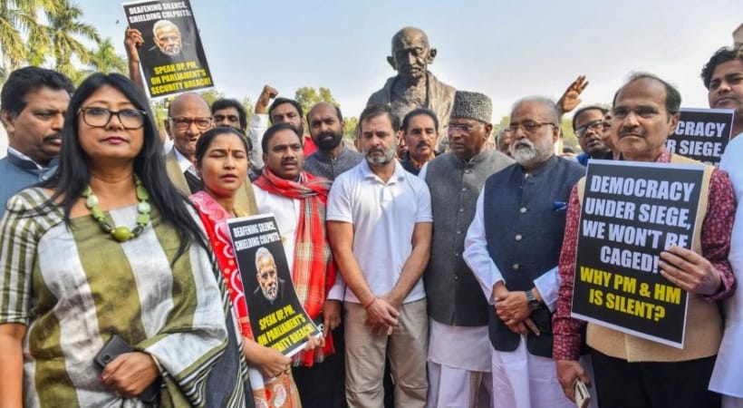 ಸಂಸತ್ತಿನಲ್ಲಿ ವಿರೋಧ ಪಕ್ಷದ ಸದಸ್ಯರ ವಿರುದ್ಧ ಸಂಸದರು ಇಂದು ಸಾಮೂಹಿಕ ಪ್ರತಿಭಟನೆ ನಡೆಸಲಿದ್ದಾರೆ. ಗಾಂಧಿ ಪ್ರತಿಮೆಯಿಂದ ವಿಜಯ್ ಚೌಕ್ ‌ವರೆಗೆ ಸಂಸದರು ಮೆರವಣಿಗೆ ನಡೆಸಲಿದ್ದಾರೆ. ಸದಸ್ಯರ ವಿರುದ್ಧದ ಕ್ರಮ ಪ್ರಜಾಪ್ರಭುತ್ವ ವಿರೋಧಿಯಾಗಿದ್ದು, ಪ್ರಧಾನಿ ಮತ್ತು ಗೃಹ ಸಚಿವರು ಸಂಸತ್ತಿನ ಉಭಯ ಸದನಗಳಲ್ಲಿ ಹೇಳಿಕೆ ನೀಡಬೇಕು ಎಂದು ಪ್ರತಿಪಕ್ಷಗಳು ಒತ್ತಾಯಿಸುತ್ತವೆ. ಇದೇ ಬೇಡಿಕೆಯೊಂದಿಗೆ ನಾಳೆ ಭಾರತ ಒಕ್ಕೂಟವು ಜಂತರ್ ಮಂತರ್ ‌ನಲ್ಲಿ ಪ್ರತಿಭಟನೆ ನಡೆಸಲಿದೆ.