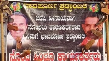‘ಬಿಜೆಪಿ ಹೀನಾಯವಾಗಿ ಸೋಲಲು ಕಾರಣರಾದ ನಿಮಗೆ ಭಾವಪೂರ್ಣ ಶ್ರದ್ಧಾಂಜಲಿ’ ಅಂತ ನೊಂದ ಹಿಂದೂ ಕಾರ್ಯಕರ್ತರ ಹೆಸರಿನಲ್ಲಿ ಬ್ಯಾನರ್ ಅಳವಡಿಸಲಾಗಿದೆ.