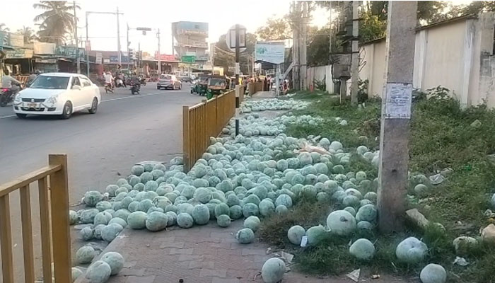 ಸಿರಾ ಗೇಟ್ ನಿಂದ ತುಮಕೂರು ಮಾರುಕಟ್ಟೆ ವರೆಗೂ ಇದೇ ರೀತಿ ರಸ್ತೆಗೆ ಮತ್ತು ಚರಂಡಿಗೆ ಬೂದುಗುಂಬಳಕಾಯಿ ಸುರಿಯಲಾಗಿದೆ. ಹಬ್ಬದ ಪ್ರಯುಕ್ತ ರಾಶಿ ರಾಶಿ ಬೂದುಗುಂಬಳಕಾಯಿ ತರಲಾಗಿದ್ದು, ಆದ್ರೆ ವ್ಯಾಪಾರವಿಲ್ಲದೇ ಇಲ್ಲಿಯೇ ಸುರಿದು ಹೋಗಿರುವ ಶಂಕೆ ವ್ಯಕ್ತವಾಗಿದೆ.