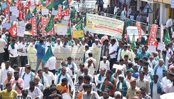 ನಂದಿಹಳ್ಳಿ—ಮಲ್ಲಸಂದ್ರ–ವಸಂತನರಸಾಪುರ ಬೈಪಾಸ್ ರಸ್ತೆ ವಿರೋಧಿ ಹೋರಾಟ ಸಮಿತಿ ನೇತೃತ್ವದಲ್ಲಿ ರೈತರು ನಗರದ ಟೌನ್‌ ಹಾಲ್‌ ವೃತ್ತದಿಂದ ಪ್ರತಿಭಟನಾ ಮೆರವಣಿಗೆ ನಡೆಸಿದರು.