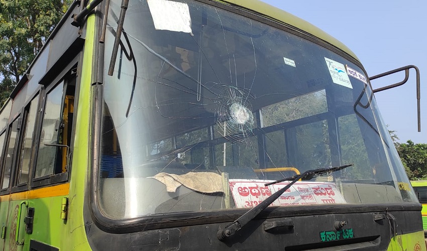 ಪುಣೆಯಿಂದ ಅಥಣಿಗೆ ಸಂಚರಿಸುತ್ತಿದ್ದ ಬಸ್ಸಿನ ಮುಂಭಾಗದ ಗಾಜು ಹಾಗೂ ಎರಡು ಕಿಟಕಿ ಒಡೆದಿವೆ. ಬಸ್ ಸಂಚರಿಸುವಾಗ ರಸ್ತೆಗೆ ಅಡ್ಡಬಂದ ಕಿಡಿಗೇಡಿಗಳು ಕಲ್ಲು ತೂರಿ ಪರಾರಿಯಾಗಿದ್ದಾರೆ. ಬಸ್ಸಿನ ಚಾಲಕ ಕುಳಿತಿದ್ದ ಭಾಗದ ಗಾಜು ಒಡೆದು ಹೋದರೂ ಚಾಲಕ ವಾಹನ ನಿಲ್ಲಿಸದೇ ಸುರಕ್ಷಿತವಾಗಿ ಗಡಿ ದಾಟಿಸಿದ್ದಾರೆ.