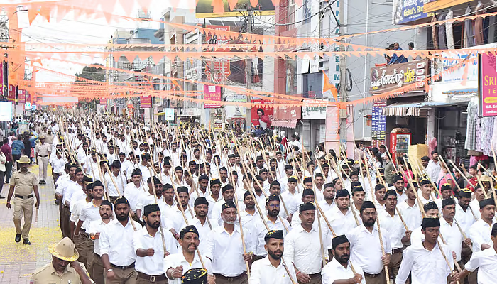 ತುಮಕೂರು: ರಾಷ್ಟ್ರೀಯ ಸ್ವಯಂ ಸೇವಕ ಸಂಘದ (ಆರ್ ಎಸ್ ಎಸ್) ಶತಮಾನೋತ್ಸವದ ಪ್ರಯುಕ್ತ ನಗರದಲ್ಲಿ ಶನಿವಾರ ಸಂಘ ಶತಾಬ್ದ ಪಥ ಸಂಚಲನ ನಡೆಯಿತು.