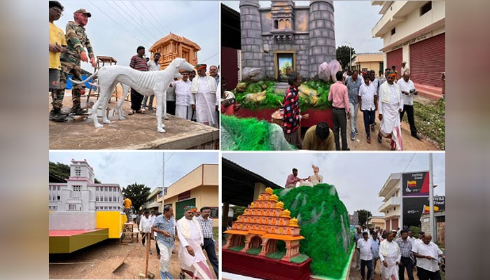 ಇದೇ ವೇಳೆ ದಸರಾ ಜಂಬೂಸವಾರಿಯಲ್ಲಿ ಸಾಗಲಿರುವ ಸ್ತಬ್ಧಚಿತ್ರಗಳನ್ನು ವೀಕ್ಷಿಸಿದರು. ಪ್ರತಿ ಜಿಲ್ಲೆಯಿಂದ ಸ್ತಬ್ಧಚಿತ್ರಗಳು ಆಗಮಿಸಿವೆ. ಆಯಾ ಜಿಲ್ಲೆಯ ಕಲೆ, ಸಂಸ್ಕೃತಿ ಬಿಂಬಿಸುವ ಸ್ತಬ್ಧಚಿತ್ರಗಳು ಮೆರವಣಿಗೆಯಲ್ಲಿ ಸಾಗಲಿವೆ. ಜಂಬೂಸವಾರಿ ತಯಾರಿ ಅಂತಿಮ ಹಂತದಲ್ಲಿದೆ. ಯಾವುದೇ ಕೊರತೆ ಇಲ್ಲ. ಕಲಾತಂಡಗಳ ಆಗಮನವಾಗಿದೆ ಎಂದರು.