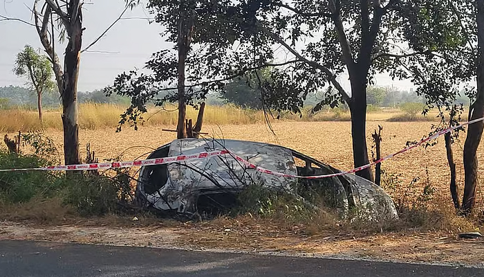 ಘಟನೆಯ ವಿವರ: ಶಿರಾ ತಾಲ್ಲೂಕಿನ ಮುದ್ದರಂಗನಹಳ್ಳಿ ಗೇಟ್ ಸಮೀಪದ ಅರಣ್ಯ ಪ್ರದೇಶದಲ್ಲಿ ಈ ದುರ್ಘಟನೆ ಸಂಭವಿಸಿದೆ. ಚಾಲಕನ ನಿಯಂತ್ರಣ ತಪ್ಪಿದ ಕಾರು ರಸ್ತೆ ಪಕ್ಕದಲ್ಲಿದ್ದ ಮರಕ್ಕೆ ಜೋರಾಗಿ ಡಿಕ್ಕಿ ಹೊಡೆದಿದೆ. ಡಿಕ್ಕಿಯ ರಭಸಕ್ಕೆ ಕಾರಿನಲ್ಲಿ ತಕ್ಷಣವೇ ಬೆಂಕಿ ಕಾಣಿಸಿಕೊಂಡಿದ್ದು, ನೋಡನೋಡುತ್ತಿದ್ದಂತೆಯೇ ಇಡೀ ಕಾರು ಬೆಂಕಿಯ ಕೆನ್ನಾಲಿಗೆಗೆ ಸಿಲುಕಿ ಸಂಪೂರ್ಣವಾಗಿ ಭಸ್ಮವಾಗಿದೆ.