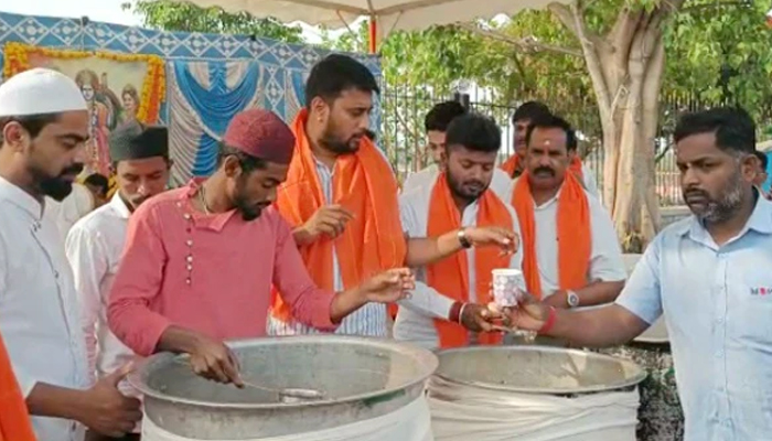 ಕಾಂಗ್ರೆಸ್ ಯುವ ಕಾರ್ಯಕರ್ತರು ಕೇಸರಿ ಶಾಲು ಧರಿಸಿದ್ರೇ, ಮುಸ್ಲೀಮರು ಟೋಪಿ ಧರಿಸಿ, ಶ್ರೀರಾಮ ನವಮಿ ಪೂಜೆಯಲ್ಲಿ ಭಾಗಿಯಾಗಿದ್ದು ಕಂಡು ಬಂತು. ಜೊತೆಗೆ ಪಾನಕ ಹಂಚಿ, ರಾಮನವಮಿ ಆಚರಿಸಿದರು.