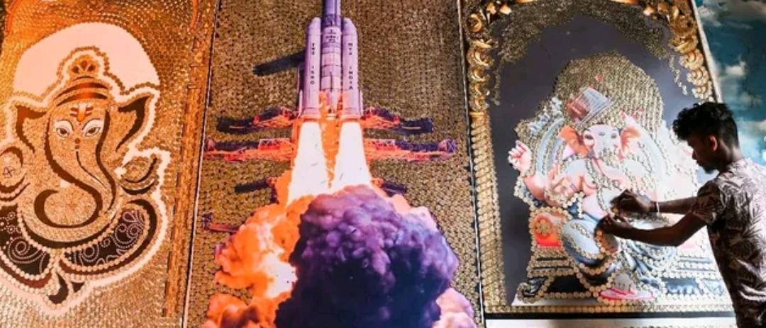ಬೆಂಗಳೂರು: ಗಣೇಶ ಚತುರ್ಥಿ ಅಂಗವಾಗಿ ಜೆ.ಪಿ. ನಗರದ ಸತ್ಯಗಣಪತಿ ಶಿರಡಿ ಸಾಯಿ ಮಂದಿರದಲ್ಲಿ 50 ಲಕ್ಷ ಮೌಲ್ಯದ ನಾಣ್ಯಗಳಿಂದ ವಿಶೇಷ ಅಲಂಕಾರ ಮಾಡಲಾಗಿದೆ. ಒಟ್ಟು 50 ಲಕ್ಷ ಮೌಲ್ಯದ ನಾಣ್ಯಗಳಲ್ಲಿ 12 ವಿವಿಧ ರೀತಿಯ ಗಣೇಶನ ಚಿತ್ರಗಳನ್ನು ಬಿಡಿಸಲಾಗಿದೆ.