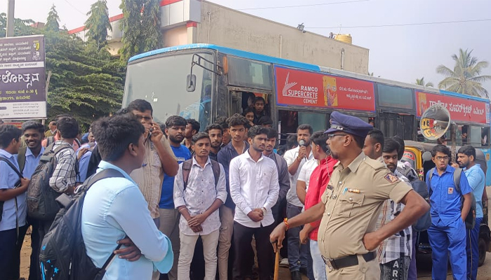 ಪ್ರತಿಭಟನೆಯನ್ನು ಉದ್ದೇಶಿಸಿ ಮಾತನಾಡಿದ ಹೃತ್ವಿಕ್ ಗೌಡ, “ಕಳೆದ ಒಂದು ವರ್ಷದಿಂದ ವಿದ್ಯಾರ್ಥಿಗಳು ಬಸ್ ಸಮಸ್ಯೆ ಎದುರಿಸುತ್ತಿದ್ದಾರೆ. ಬೆಳಿಗ್ಗೆ ಕಾಲೇಜಿಗೆ ಬರಲು ಮತ್ತು ಸಂಜೆ ಗ್ರಾಮಗಳಿಗೆ ಮರಳಲು ಸರಿಯಾದ ಸಮಯಕ್ಕೆ ಬಸ್ಸುಗಳಿಲ್ಲ. ಈ ಬಗ್ಗೆ ಡಿಪೋ ಮ್ಯಾನೇಜರ್ಗೆ ಹಲವಾರು ಬಾರಿ ಮನವಿ ನೀಡಿದರೂ ಪ್ರಯೋಜನವಾಗಿಲ್ಲ. ಮನವಿ ನೀಡಿದ ಎರಡು ದಿನ ಮಾತ್ರ ಸರಿಯಾಗಿ ಬಸ್ ಬಿಟ್ಟು, ನಂತರ ಮತ್ತೆ ಹಳೆ ಚಾಳಿ ಮುಂದುವರಿಸುತ್ತಾರೆ. ಅಧಿಕಾರಿಗಳ ಈ ಉದಾಸೀನತೆಯಿಂದ ವಿದ್ಯಾರ್ಥಿಗಳ ಭವಿಷ್ಯದ ಜೊತೆ ಚೆಲ್ಲಾಟವಾಡಲಾಗುತ್ತಿದೆ,” ಎಂದು ಆಕ್ರೋಶ ಹೊರಹಾಕಿದರು.